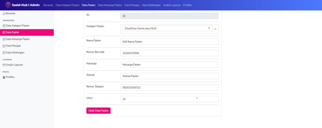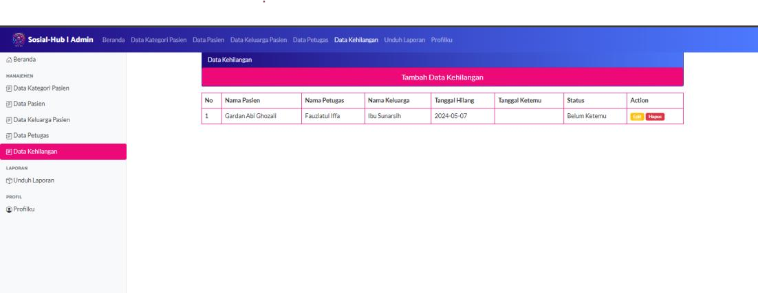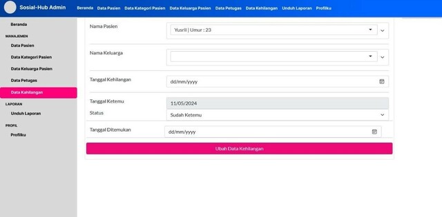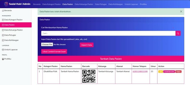 Orang Berkebutuhan Khusus (OBK), khususnya pasien dengan gangguan disabilitas mental, memiliki risiko tinggi mengalami kehilangan atau tersesat akibat keterbatasan dalam berkomunikasi dan berorientasi. Di RSJ Dr. Radjiman Wediodiningrat Lawang, peningkatan kasus kehilangan pasien OBK dari 15 kasus pada tahun 2021 menjadi 20 kasus pada tahun 2022 menunjukkan perlunya solusi pelacakan yang lebih efektif. Penelitian ini mengembangkan sistem “Sosial Hub Tracking Berbasis Website untuk Orang Berkebutuhan Khusus” dengan memanfaatkan teknologi QR Code yang terintegrasi dengan database pasien. Sistem ini dirancang menggunakan metode Waterfall, meliputi analisis kebutuhan, desain sistem, implementasi, pengujian, dan evaluasi. Data primer diperoleh melalui wawancara dan observasi langsung di RSJ, sedangkan data sekunder berasal dari literatur dan laporan statistik. Hasil pengembangan menunjukkan bahwa sistem mampu mengintegrasikan QR Code secara efektif, memungkinkan identifikasi cepat dan aman terhadap informasi pasien, serta menyediakan laporan statistik kehilangan secara akurat. Selain itu, sistem ini juga mendukung keterlibatan relawan dan masyarakat dalam proses pelacakan melalui pemindaian QR Code, sehingga mempercepat respons dalam situasi darurat. Dengan implementasi sistem ini, diharapkan angka kehilangan pasien OBK dapat berkurang secara signifikan, serta meningkatkan keselamatan dan kualitas hidup mereka. Sistem ini juga menjadi model inovatif dalam pemanfaatan teknologi informasi untuk pelayanan kesehatan mental yang lebih inklusif dan responsif.