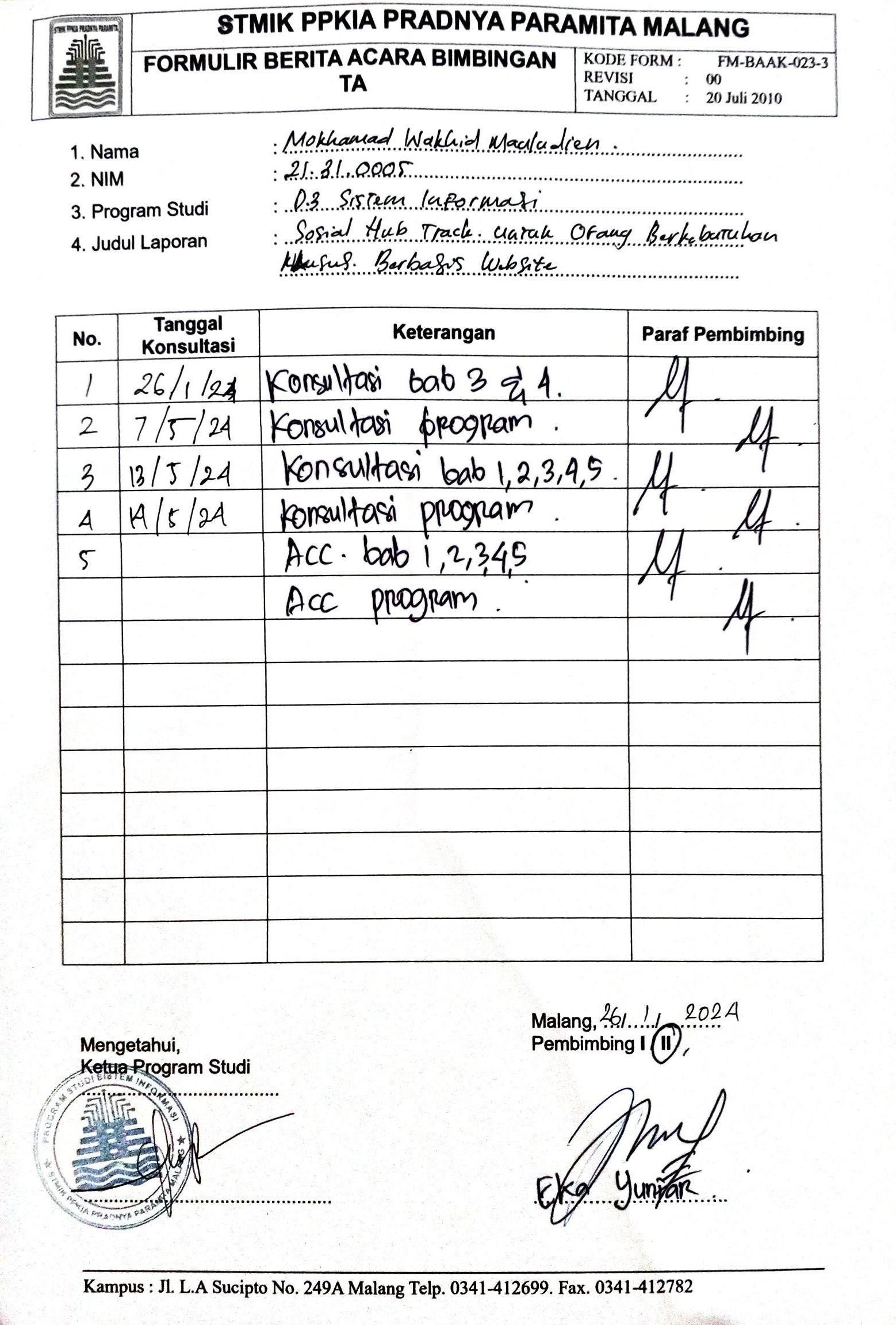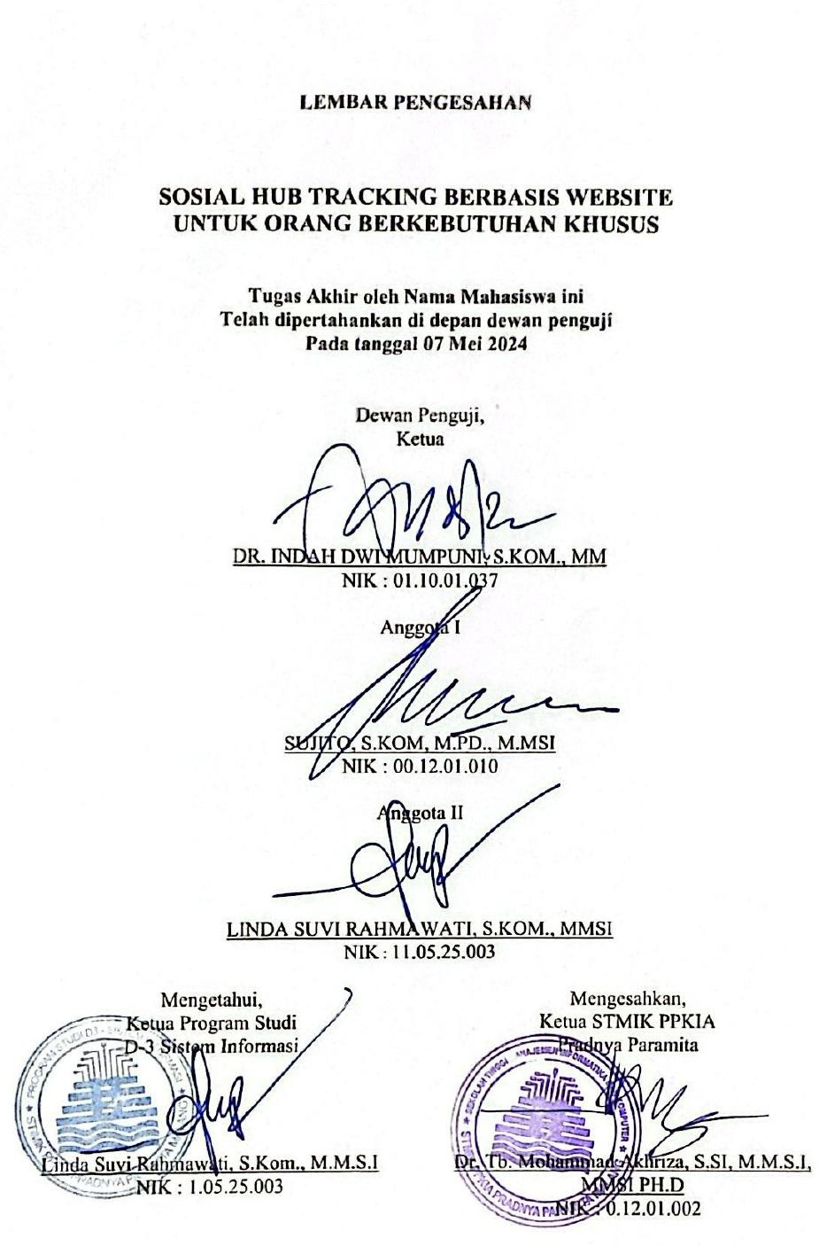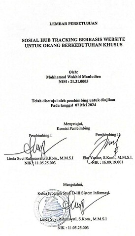 Mokhamad Wakhid Mauludien, Ludien (2025) SOSIAL HUB TRACKING BERBASIS WEBSITE UNTUK ORANG BERKEBUTUHAN KHUSUS. Project Report. STMIK PPKIA Pradnya Paramita. (Unpublished)